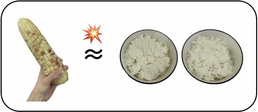 经测算,吃完一根250克(半斤)的花糯玉米,热量高达400千卡,顶得上满满一盒外卖的米饭,如果换成家里的碗,相当于两碗米饭。